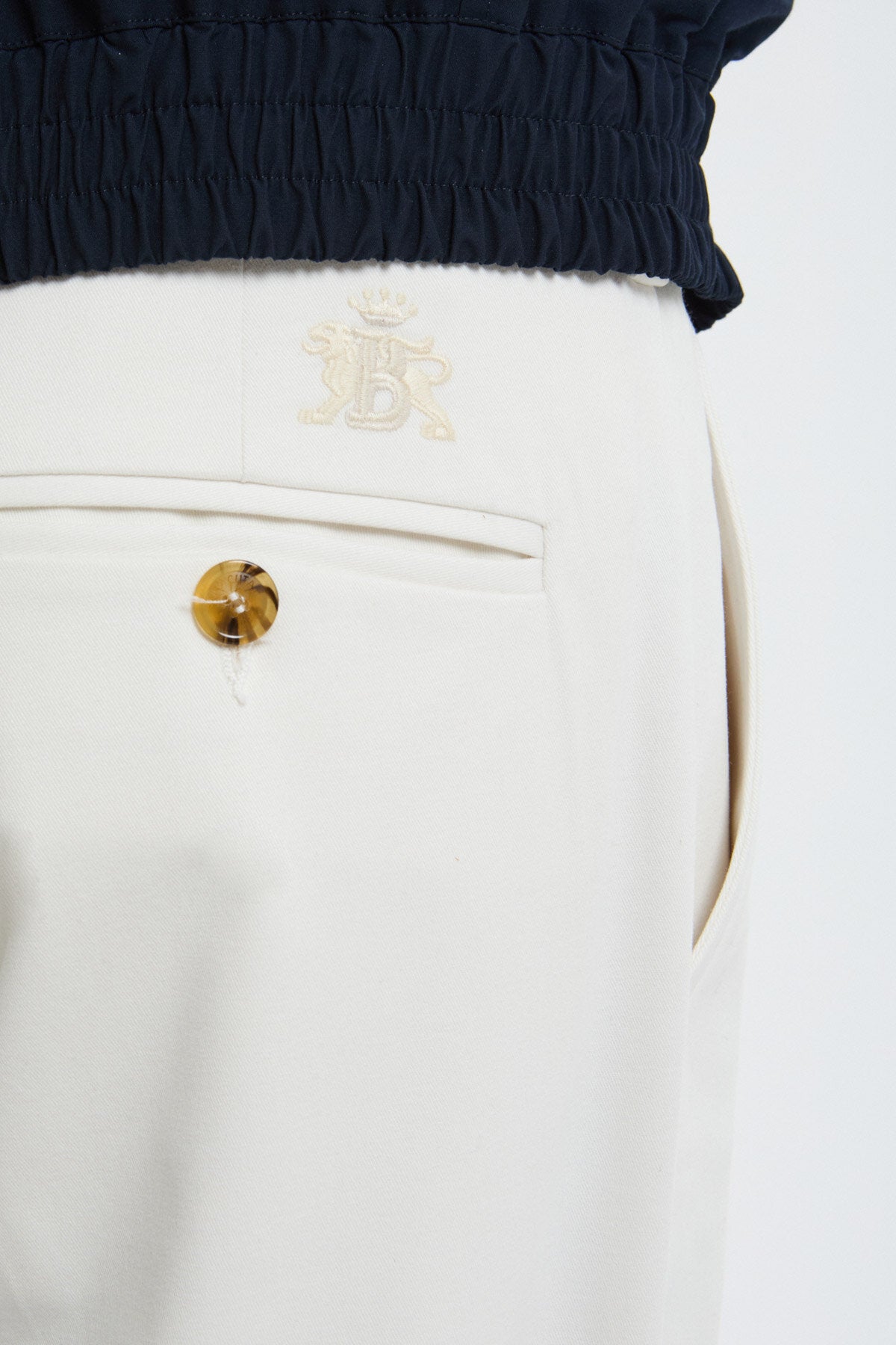 Crafted from 100% cotton, the fabric feels soft yet structured, giving the trousers a naturally easy drape and effortless charm. The seamless pockets and subtle tone-on-tone Baracuta logo on the back complete the design with a clean, classic finish, making them a versatile staple for any wardrobe.
