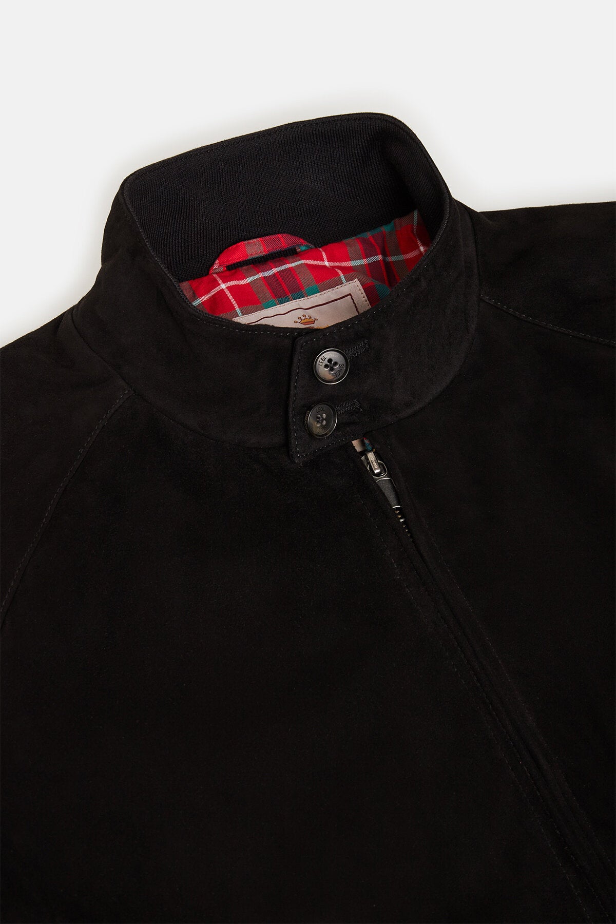 • Impossible de se tromper avec une veste en daim. La G9 en daim décline la veste Harrington classique en daim haut de gamme. En raison de sa grande polyvalence, ce modèle s’est tout de suite fait un nom et est devenu extrêmement populaire au fil des années jusqu’à s’imposer comme une véritable icône de style. La G9 en daim est dotée de notre doublure Fraser Tartan en tissu Coolmax® respirant, d’un col montant boutonné à deux boutons, de poches latérales en biais, de l’empiècement dos en forme de parapluie caractéristique de Baracuta ainsi que de poignets, d’une taille et d’un col intérieur côtelés.