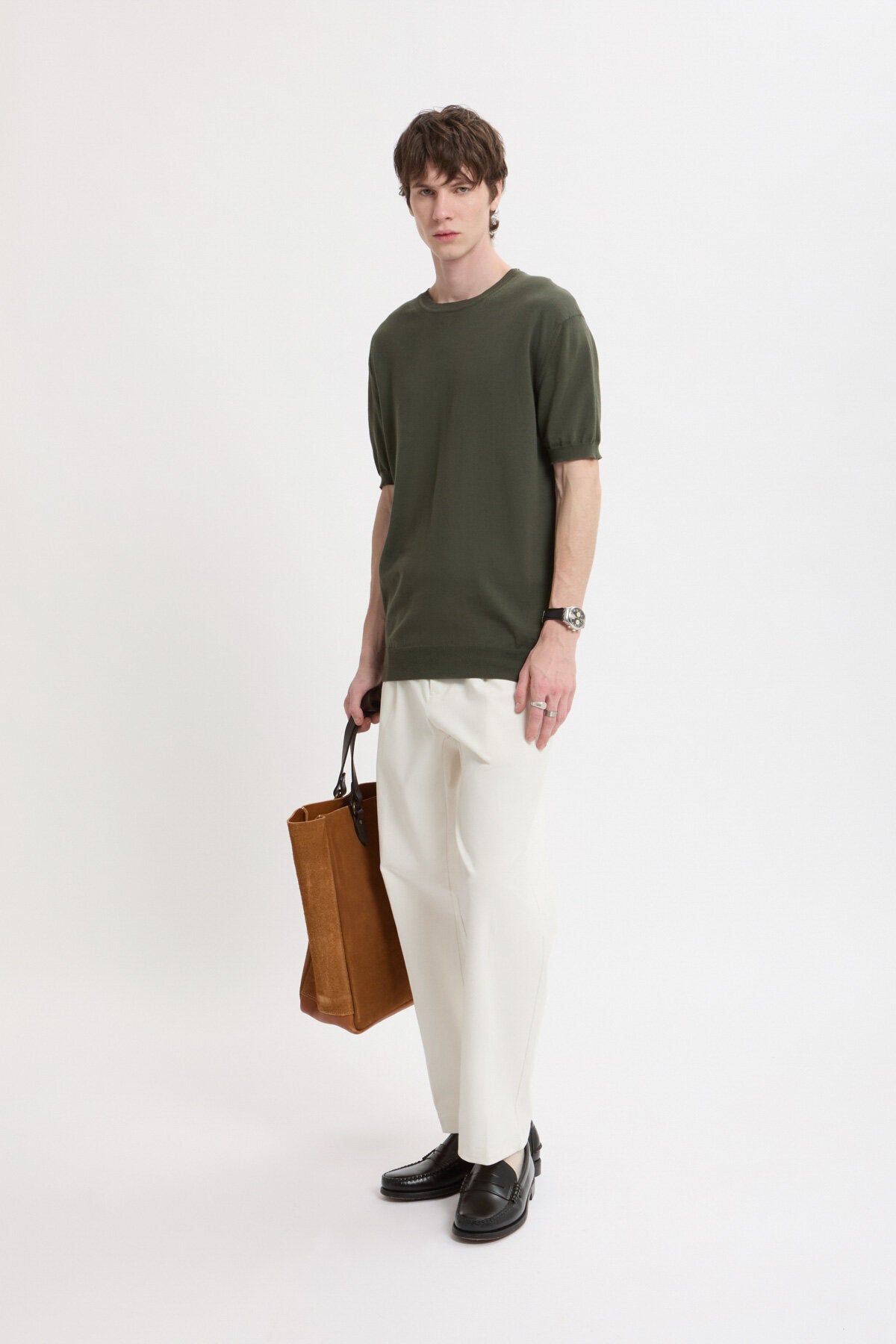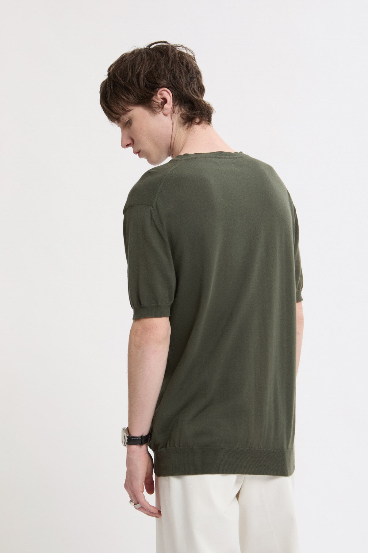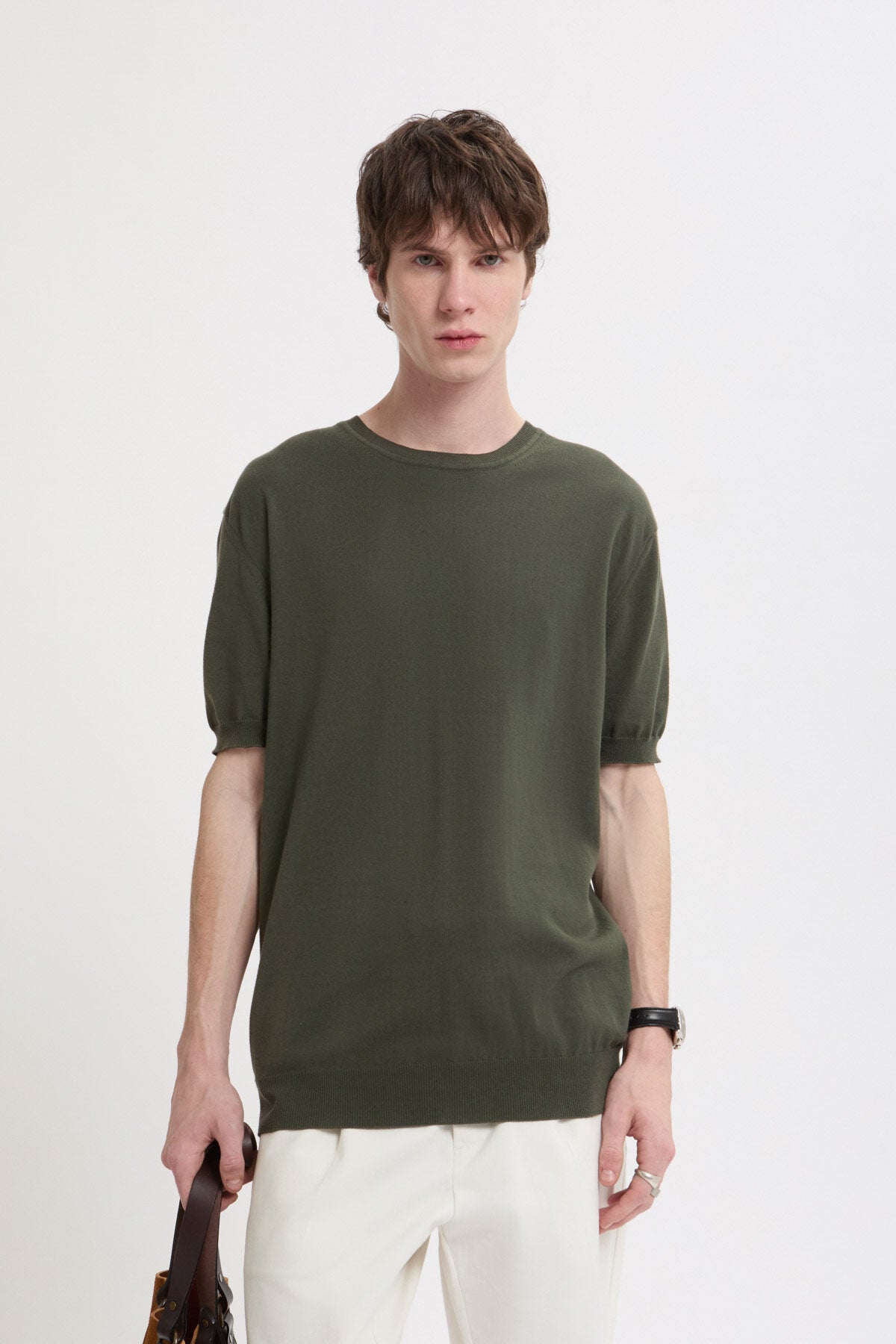 Le T-shirt en maille est fabriqué à en 100 % coton, ce qui lui confère un toucher doux et respirant et une finition nette et structurée.