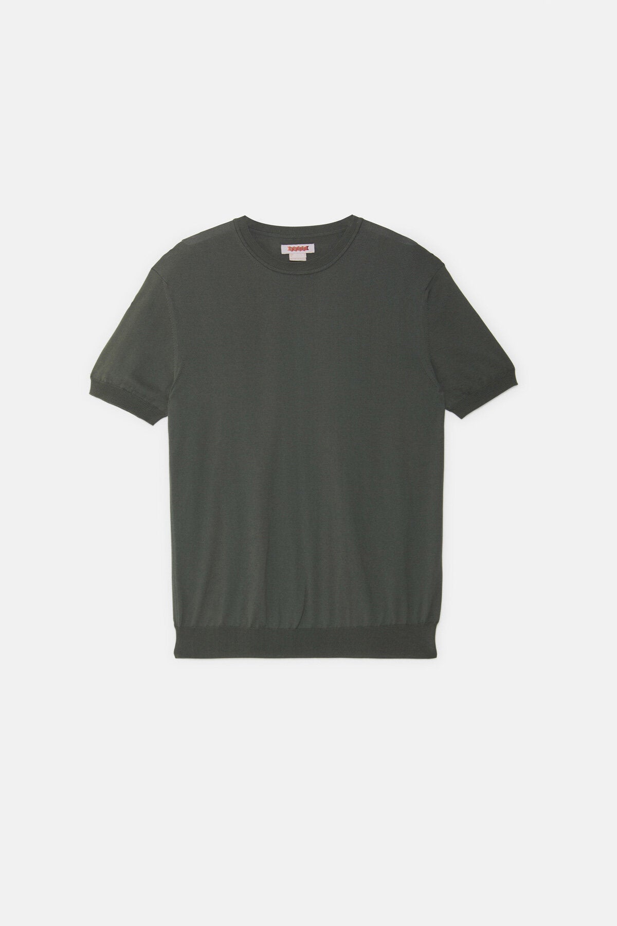 Baracuta utilise les tailles britanniques. Le t-shirt en maille présente une coupe slim.