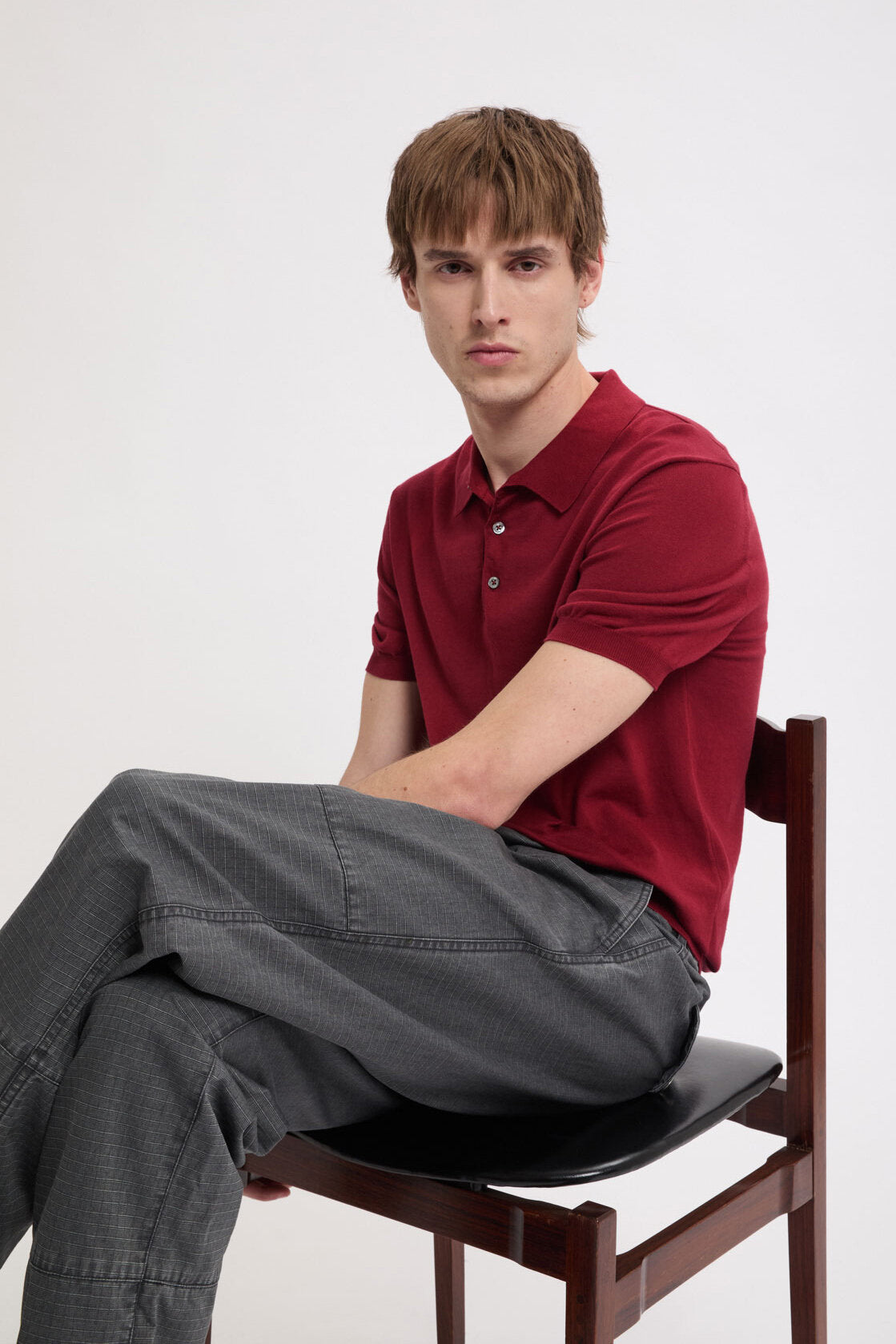 • • Vêtement teint • Fermeture trois boutons en nacre • 100 % coton