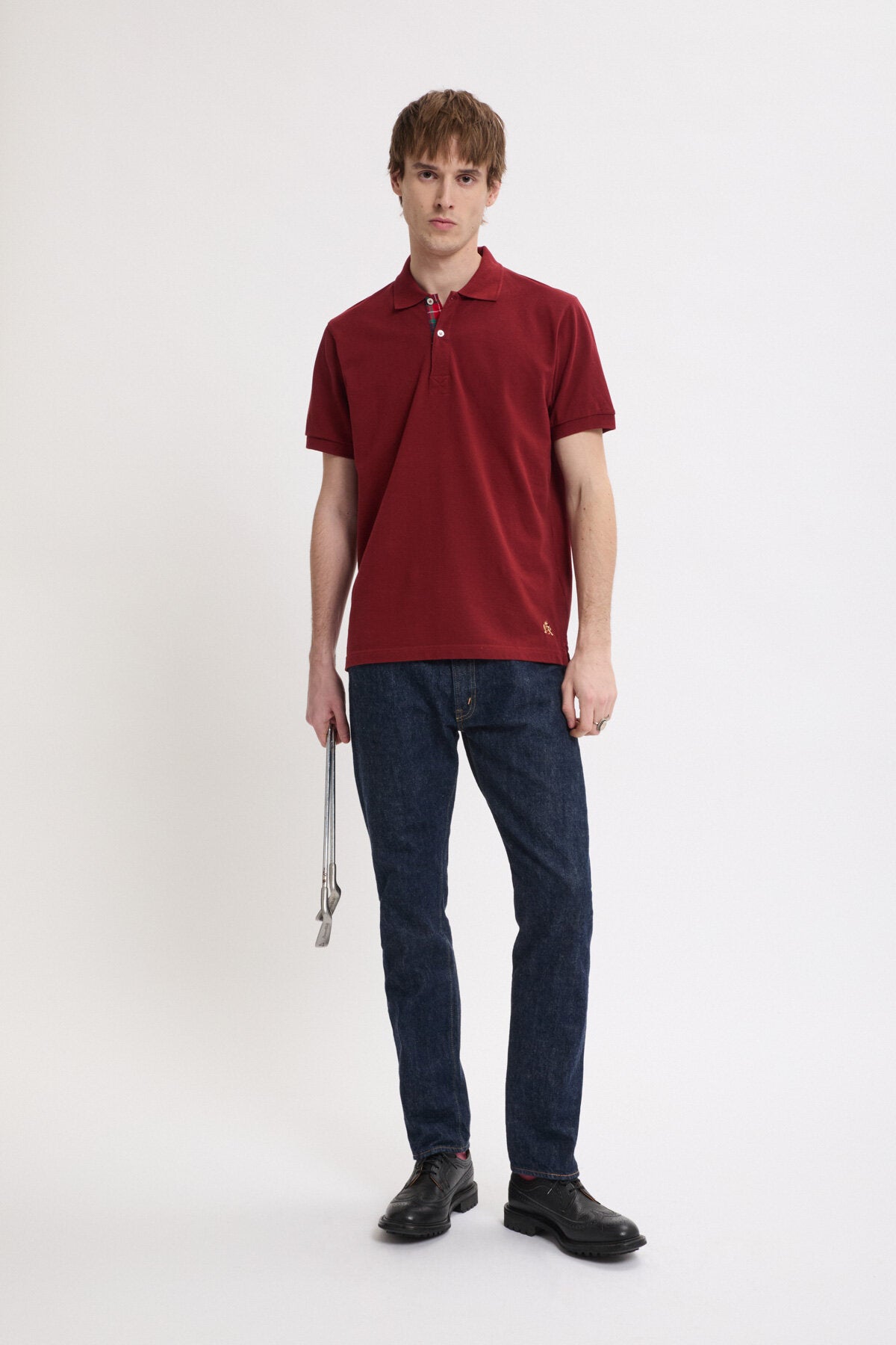 • Le polo à patte de boutonnage en tartan est fabriqué en 100 % coton. Un subtil détail de tartan Fraser le long de la patte de boutonnage apporte une touche de l'héritage de Baracuta.