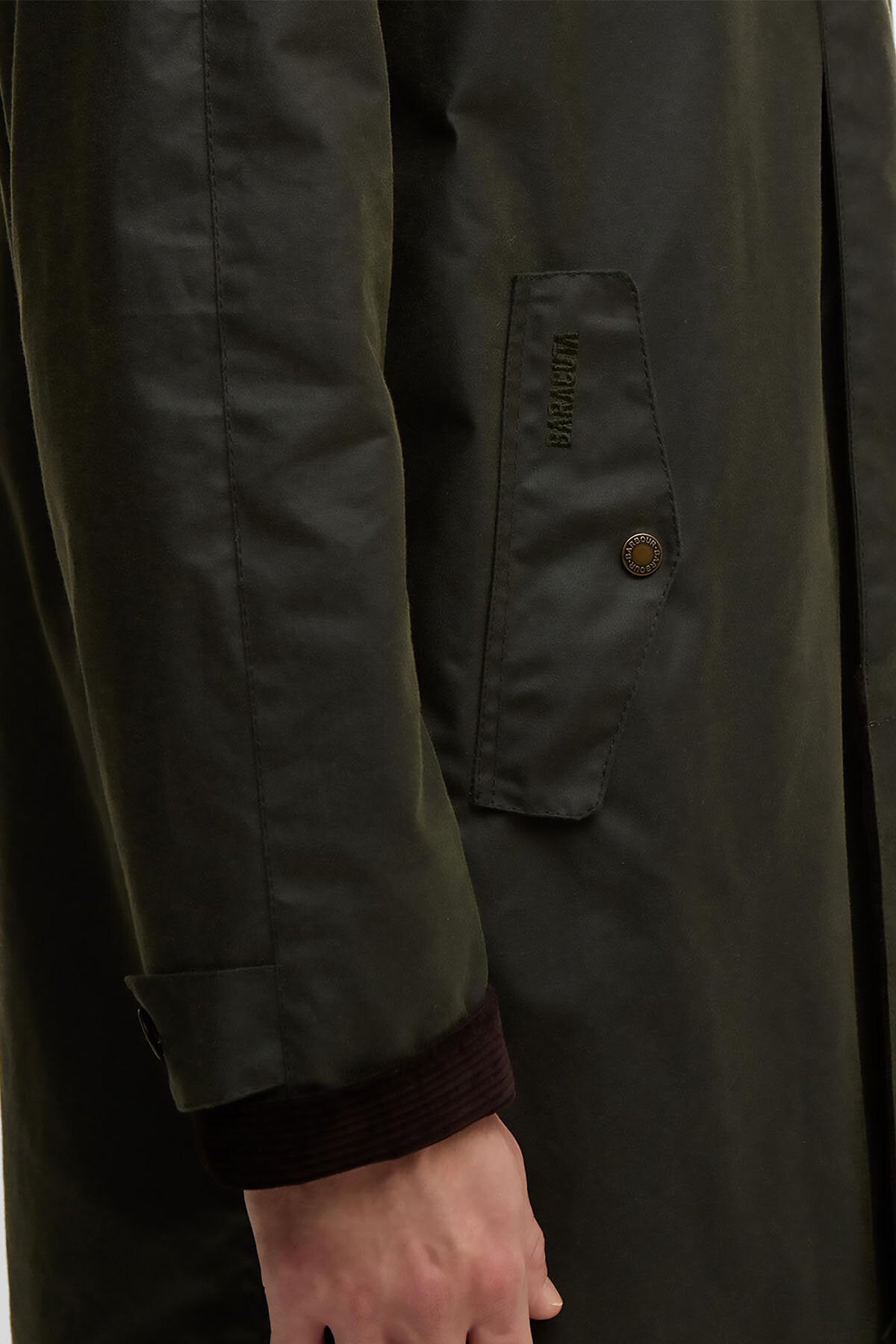 New to the collaboration, the Barbour x Baracuta Tyne Waxed Coat is inspired by a Baracuta classic, the G10. Adding a touch of signature Barbour design, this car coat design has been crafted from our 6oz Sylk oil waxed cotton and detailed with a 8-wale cord collar for a durable and timeless look. Complete with set in front sleeves with a raglan back and umbrella back yoke, this coat is perfect for wearing in wetter weather.