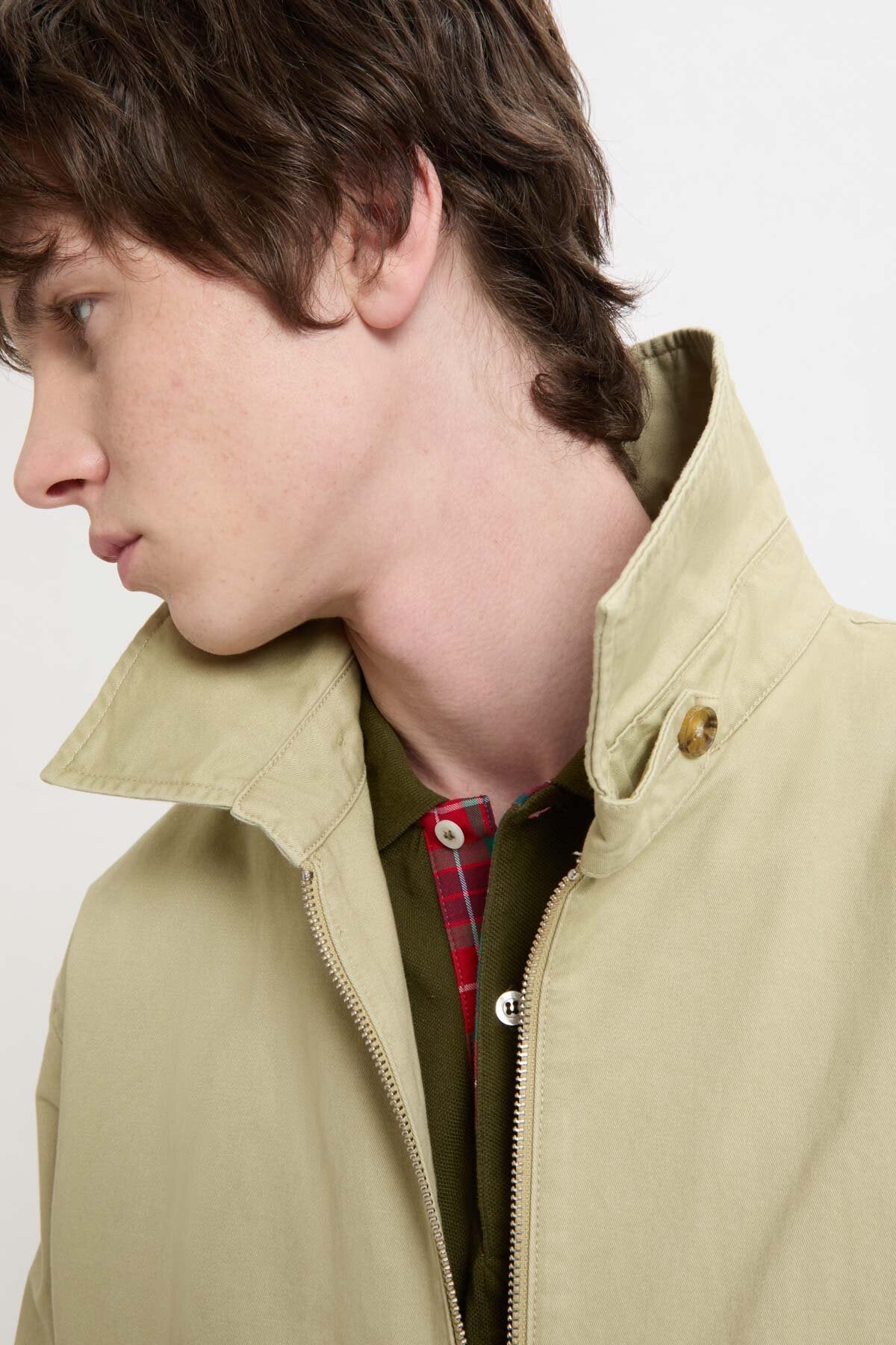 • The G18 Twill is made from 100% cotton twill, a fabric long valued for its strength, resilience, and subtle texture. Twill is woven in a distinctive diagonal pattern, which gives the material a natural durability and a soft drape that moves with you. This weave also makes the cotton more resistant to creasing and wear, allowing the jacket to retain its shape over time. With a slightly heavier weight than regular cotton, twill provides structure without feeling stiff, while developing a gentle patina with age.