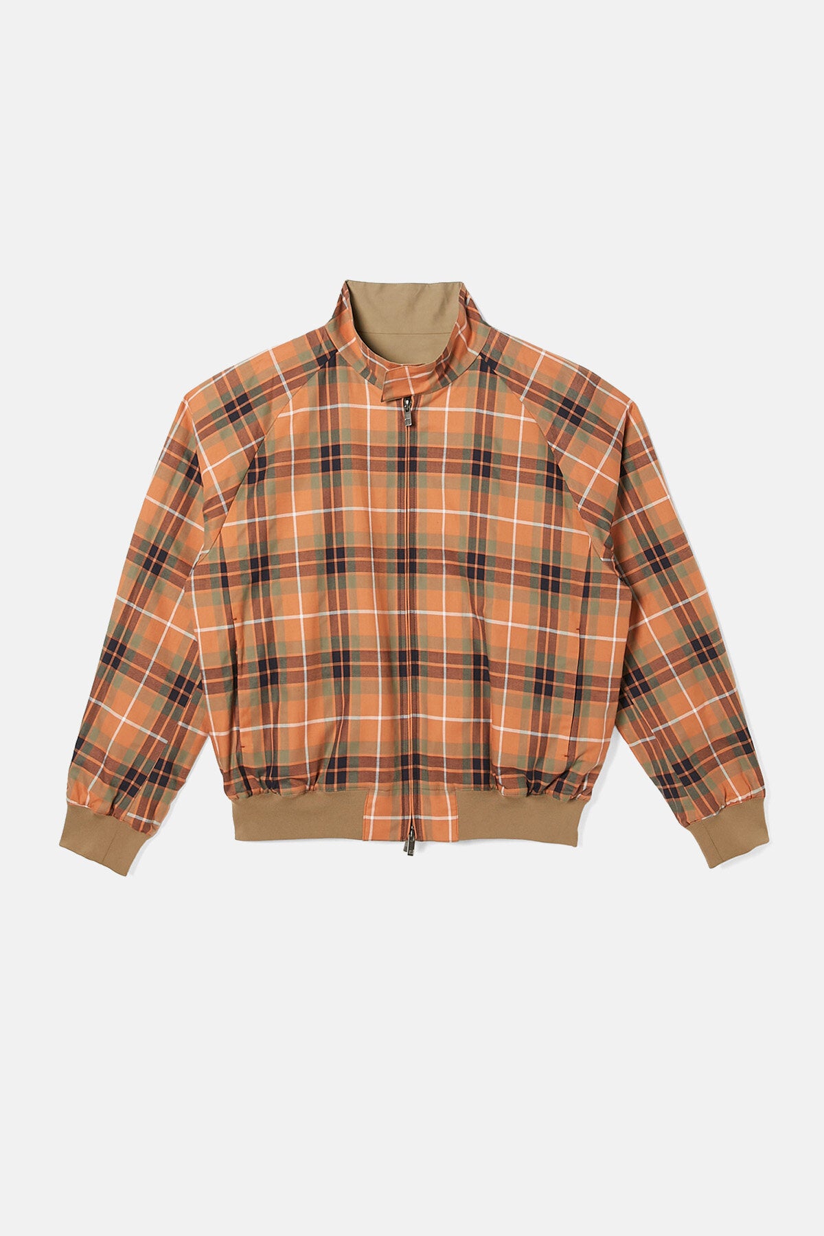 This fully reversible jacket offers two looks in one, featuring an exclusive take on Baracuta’s classic check pattern. Inspired by vintage tracksuits, the hem ribbing has been reinforced for a sharper finish, while the widened neckline subtly reveals the lining beneath. Details matter here: a two-way front zip rocks N.Hoolywood’s signature leather pull tab, engraved with the brand’s logo, alongside Baracuta’s original buttons. Inside, the placket uses Baracuta’s clever kite-threading to stop the slider catching, because it’s the little things that count. Plus, there’s a hidden mini pocket for care labels under the back rib on the checked side, and a double-branded tag tucked neatly inside the pocket.