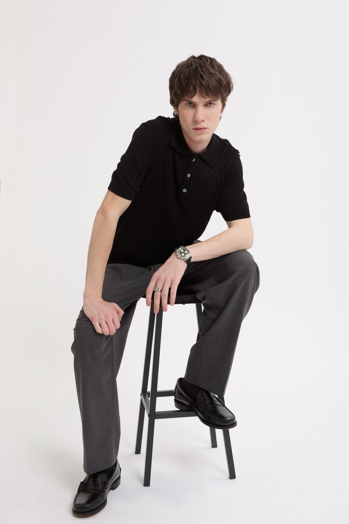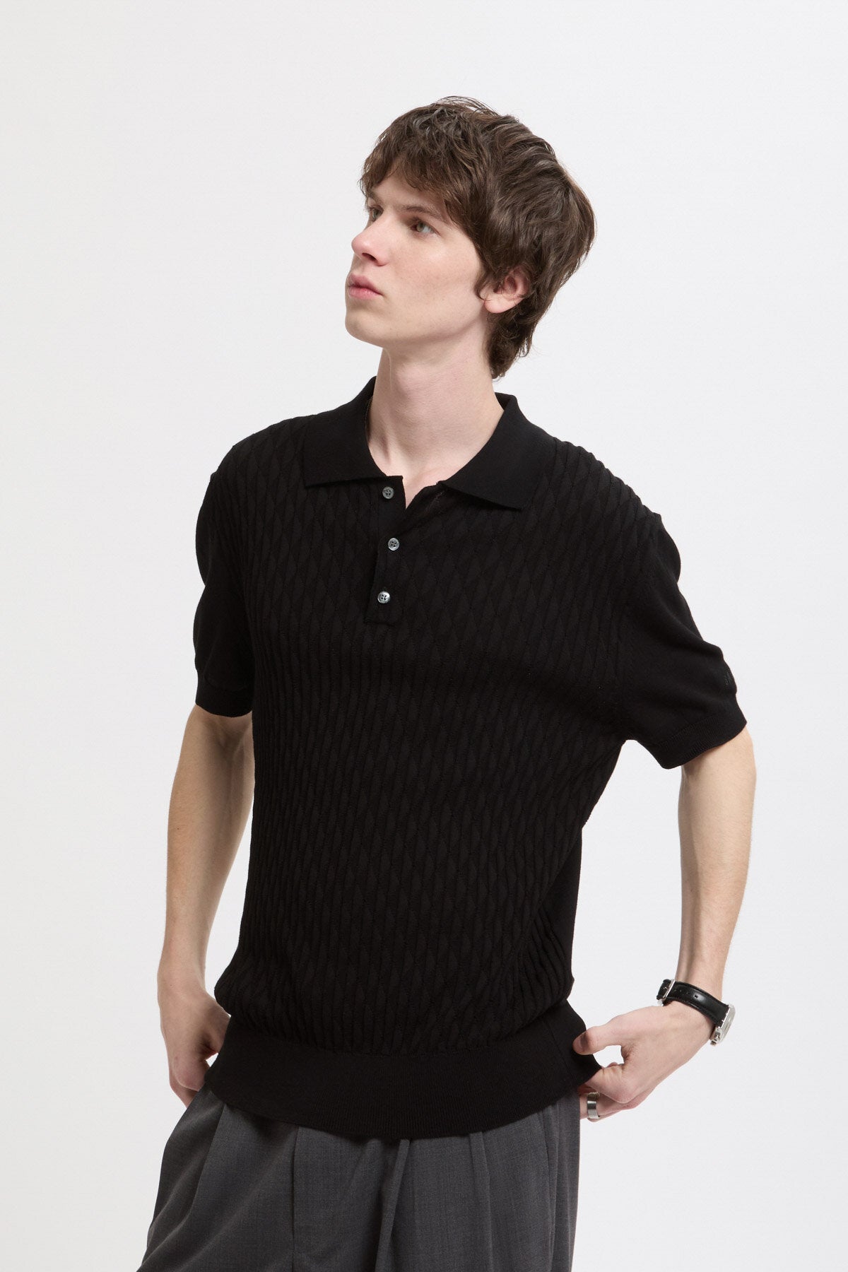 • The Pattern Stitch SS Polo is made from 100% cotton, carefully selected for its durable finish. Cotton provides natural breathability and resilience, making it ideal for everyday wear. The standout feature is the diamond-pattern stitch on the front, a detail achieved through careful knitting.