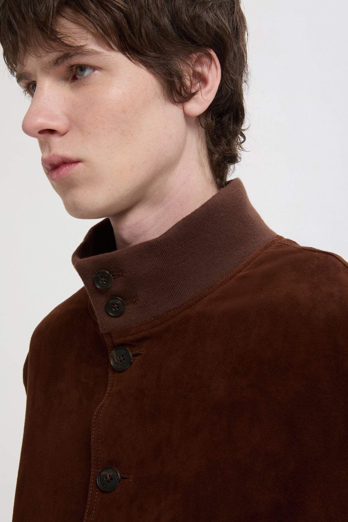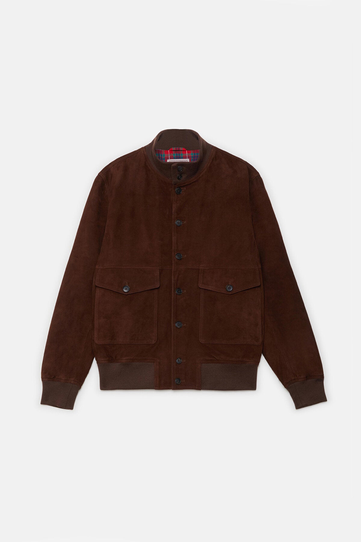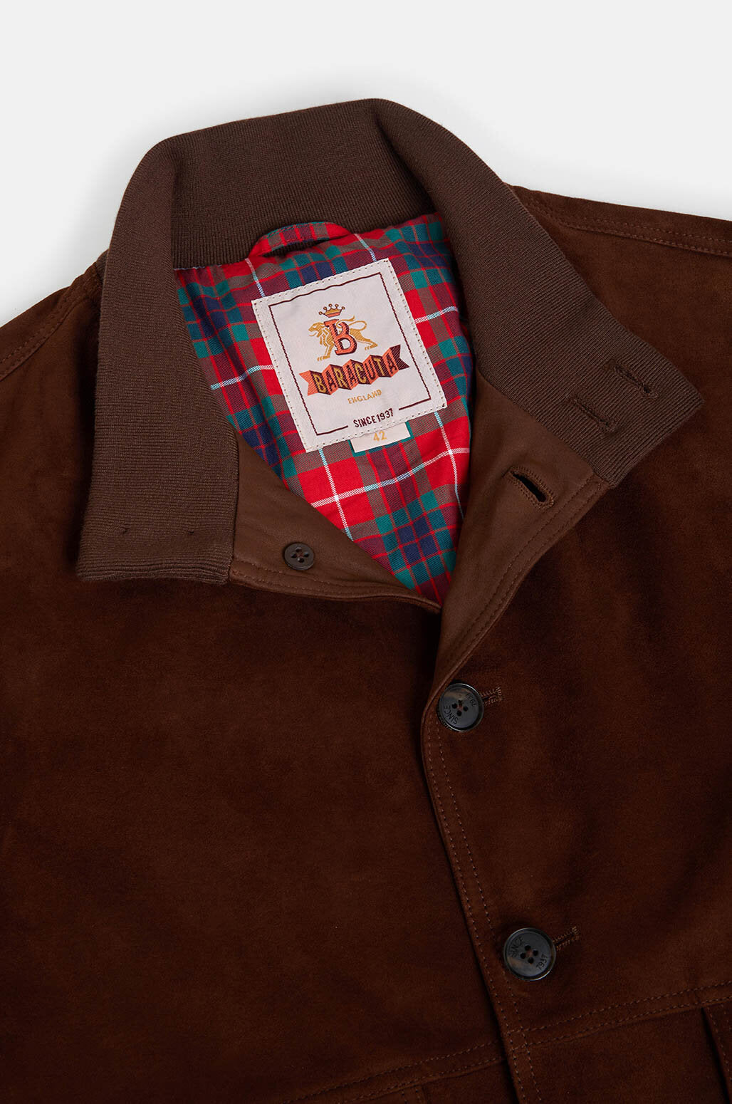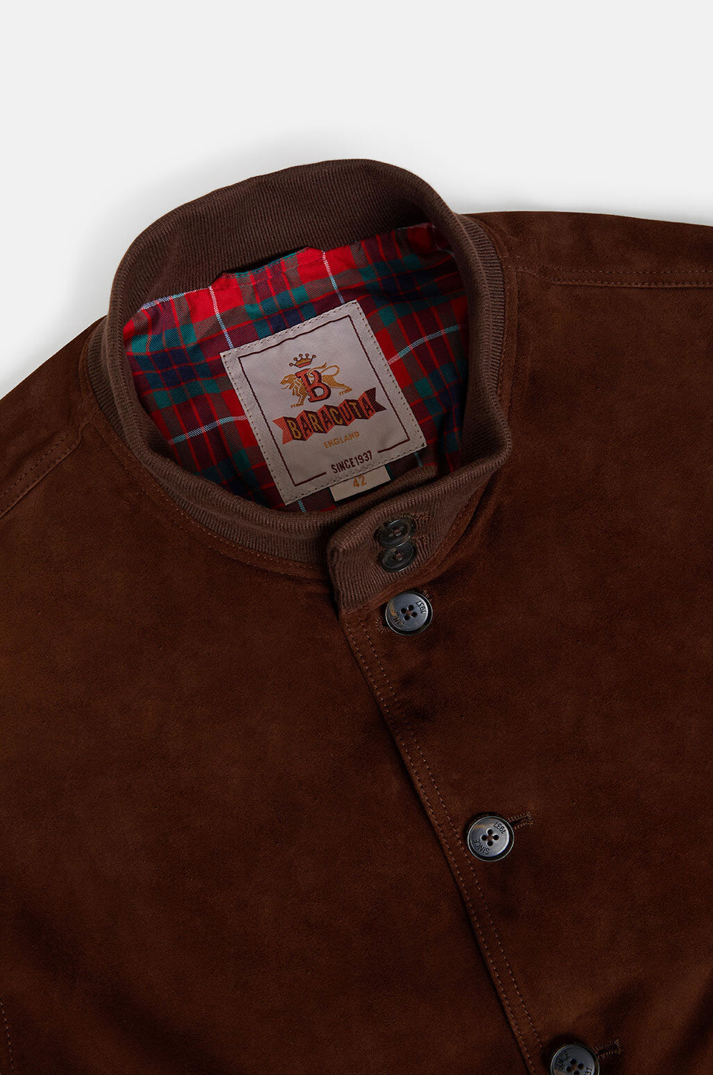 • The Suede Blouson is a jacket built to last and made to wear. Each piece is carefully cut from soft, full-grain suede, chosen for its strength, suppleness, and natural character. The ribbed Dog Ear collar, elasticated cuffs and hem, and set-in sleeves are not just design touches — they are the result of decades of experience in tailoring jackets that move with you while holding their shape. Fully lined in Fraser Tartan, the jacket reflects Baracuta’s heritage, a nod to the brand’s roots and its attention to the details that matter. It’s a jacket for everyday life.